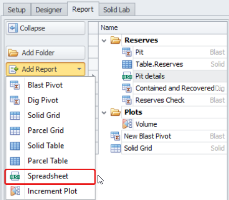 Select “Spreadsheet Report”.