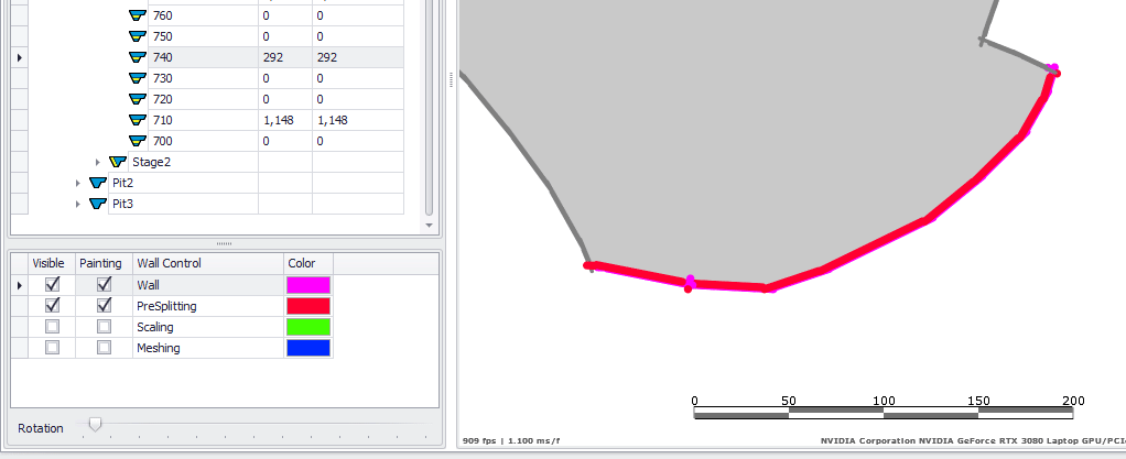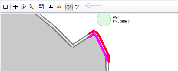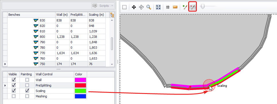When the bench is split into blast blocks, each blast will have a wall length equal to the perimeter length of that solid.