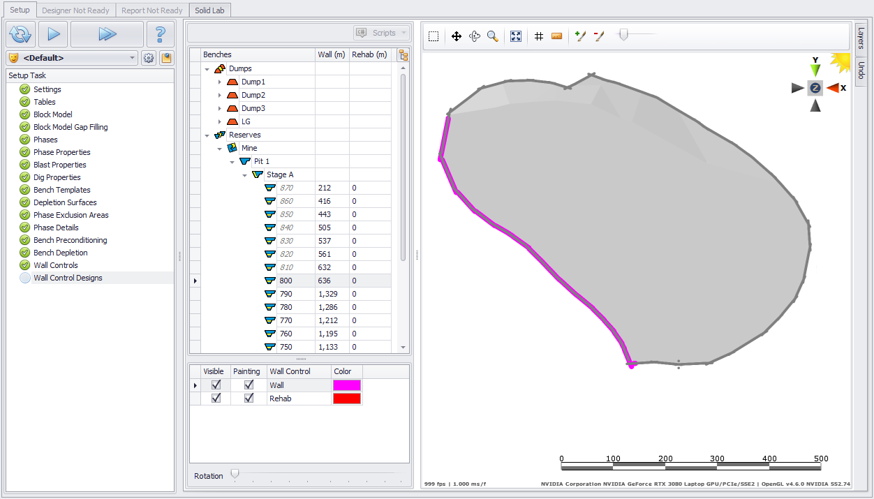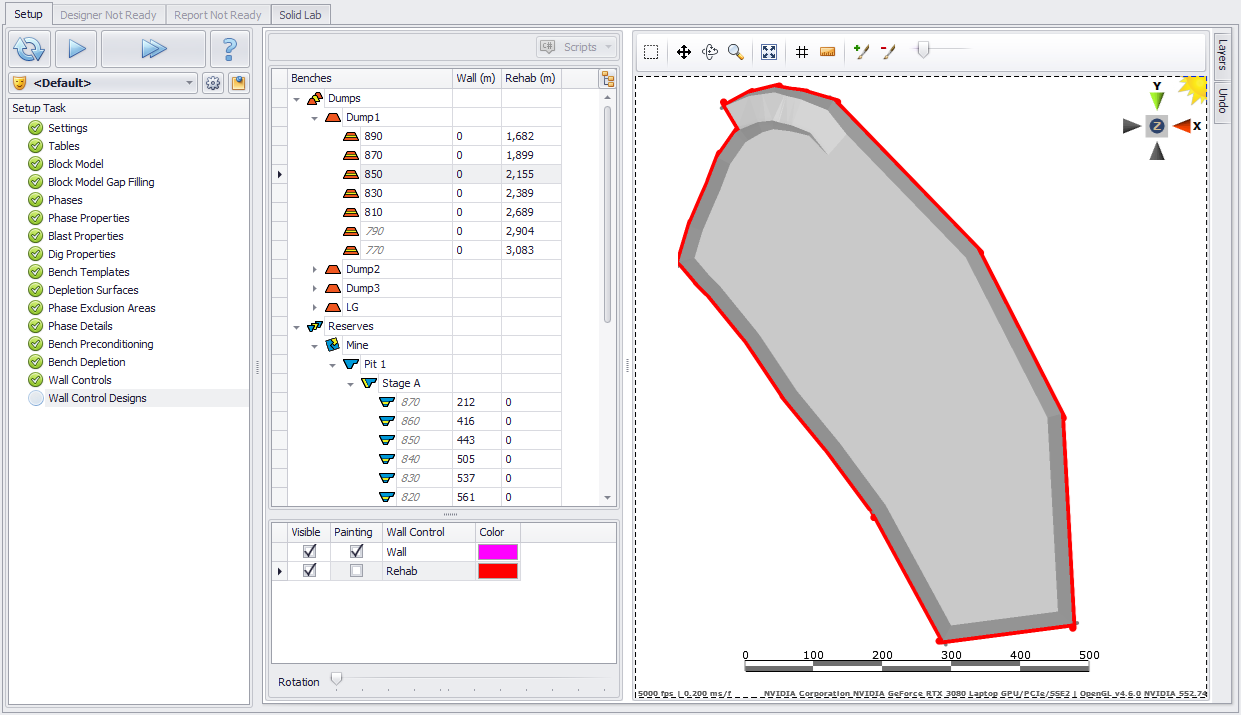 In the Wall Control Designs step, users have the option to edit wall control properties by benches/lifts.