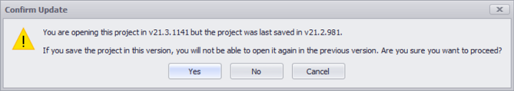 If you do open a project in a version rather than it was saved in, the message prompts will come up, showing which version project was last saved in.