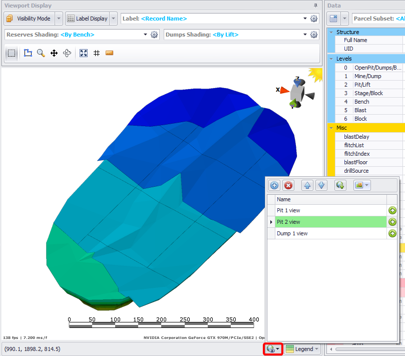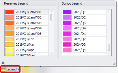 The Legend button, which is displayed in the bottom Control Panel, is used solely to display the specified Reserves and Dumps shadings or Blast shadings and hatchings, and has no editing function.
