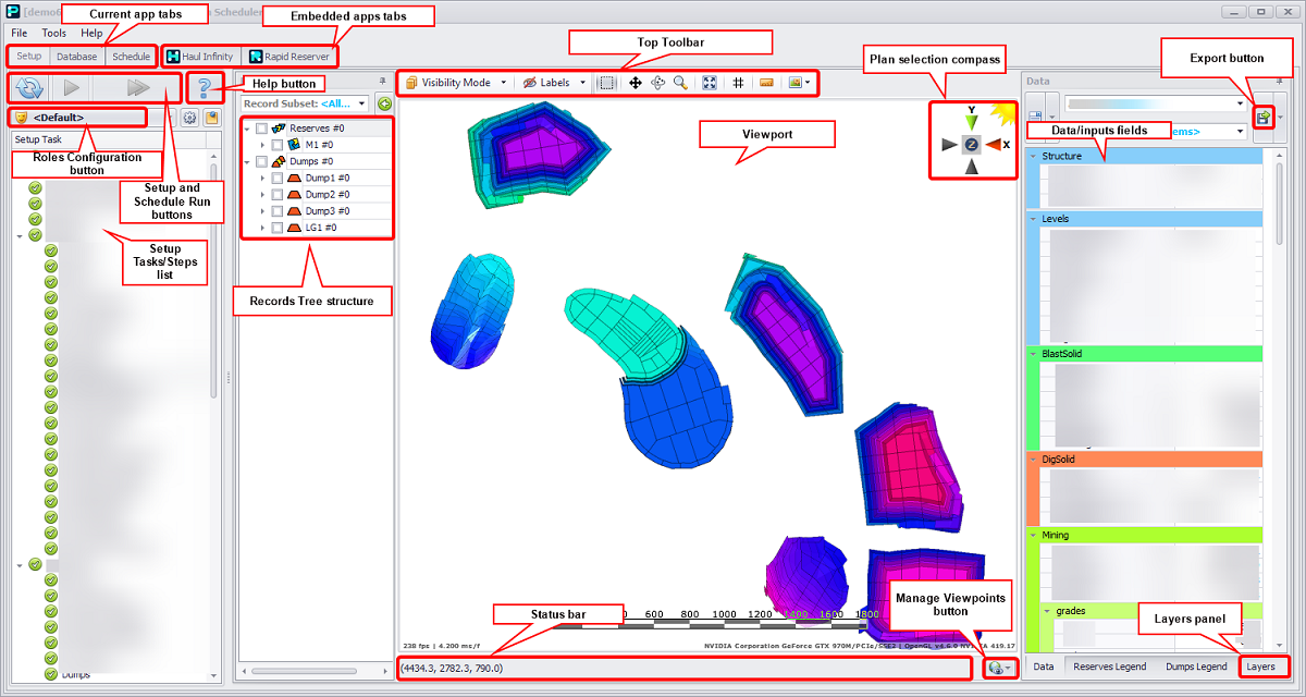 The main reoccurring in all of Alastri's applications items are shown in the figure below, but these are not all common UI elements. For a complete list, see the links to the sections below.