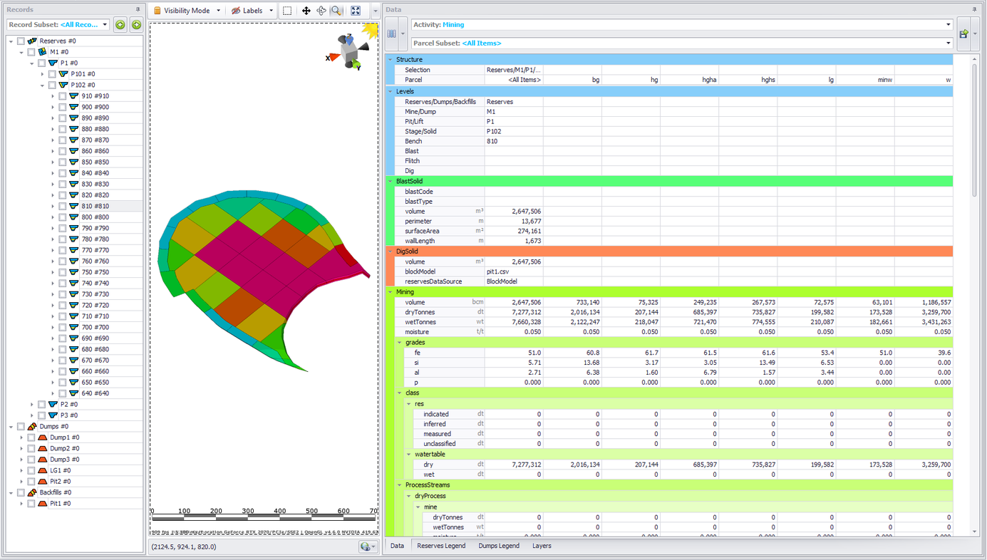 The Data panel is an area where data on the selected records are displayed and managed. It displays the reserves information available at the current step.