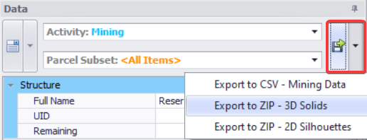 Export reserves data, solids, and silhouettes