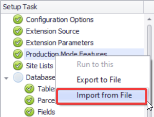 Also, for all setup steps in the Setup tab, you can right-click on any task and select the "Import from File" option, to import settings for an entire setup task.