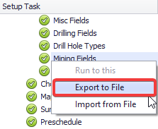Also, for all setup steps in the Setup tab, you can right-click on any task and select the "Export to File" option, to export settings for an entire setup task.