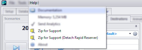 To simplify the process of sending required data to the Alastri support team, two functions have been created which will automatically zip up the data files necessary to send to support. This functionality exists under the Help menu in all products.