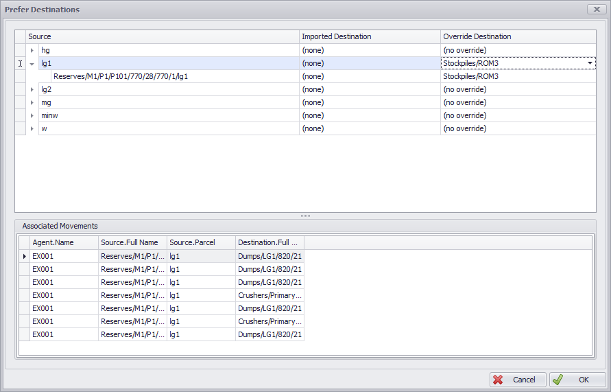 If the dig block has already been scheduled, the destination assigned by the optimizer will show in Associated Movements section.