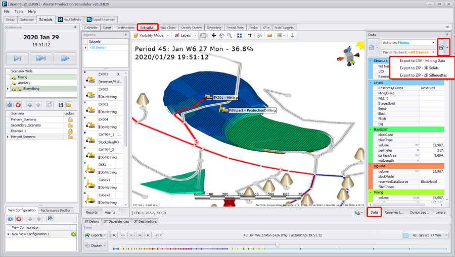 You can also export Reserves and Solids database through the Animation tab, Data panel. More details on each export option see in the Database Export Options section.