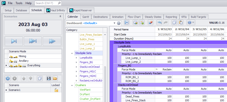 To force stockpiles to build in a certain order, run the schedule, scroll across to the period where the stockpile chosen is not the desired one. Change the priority at this period to force the reclaim order.