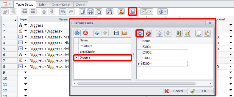In the Custom Lists dialog, create a new list called “Diggers”.
