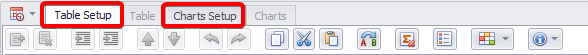 By default, an empty report will be displayed with the Table Setup and Charts Setup tabs available. Populating data into them correctly will unlock the Table and Charts tabs.