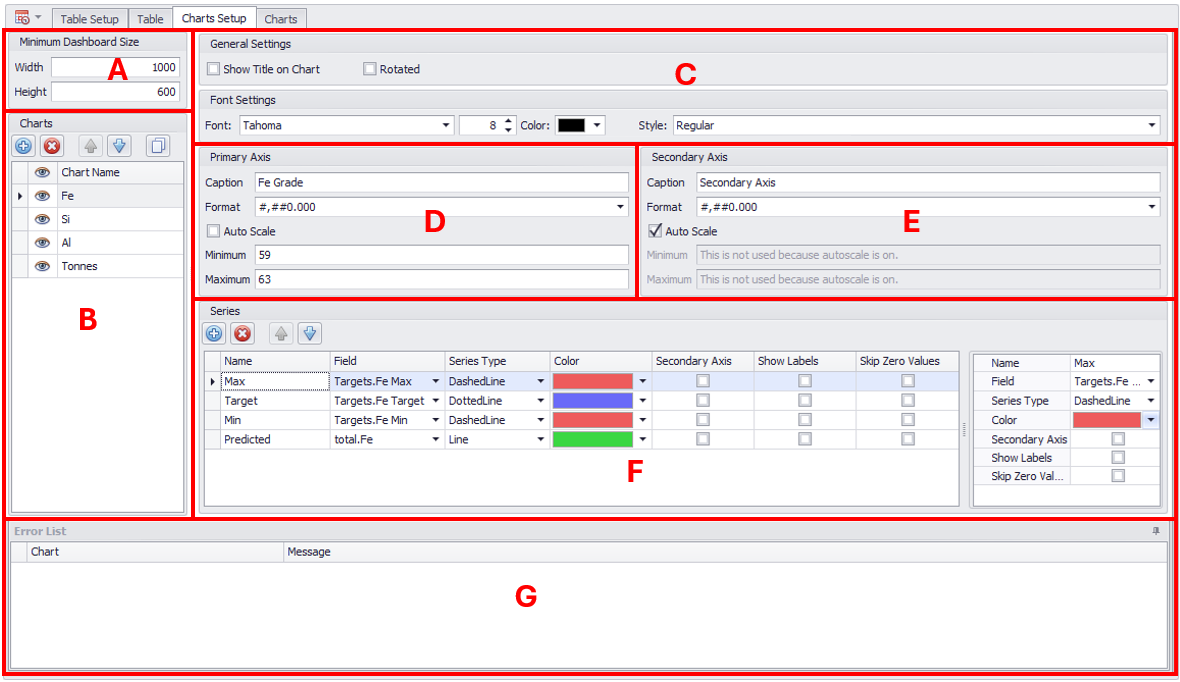 Minimum Dashboard Size – The minimum size a chart can have before the Charts tab will add scroll bars to view all visible charts.