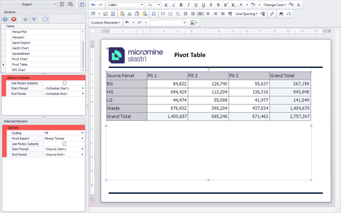 | Pivot Report | A drop-down to select which Pivot Report to reference. |