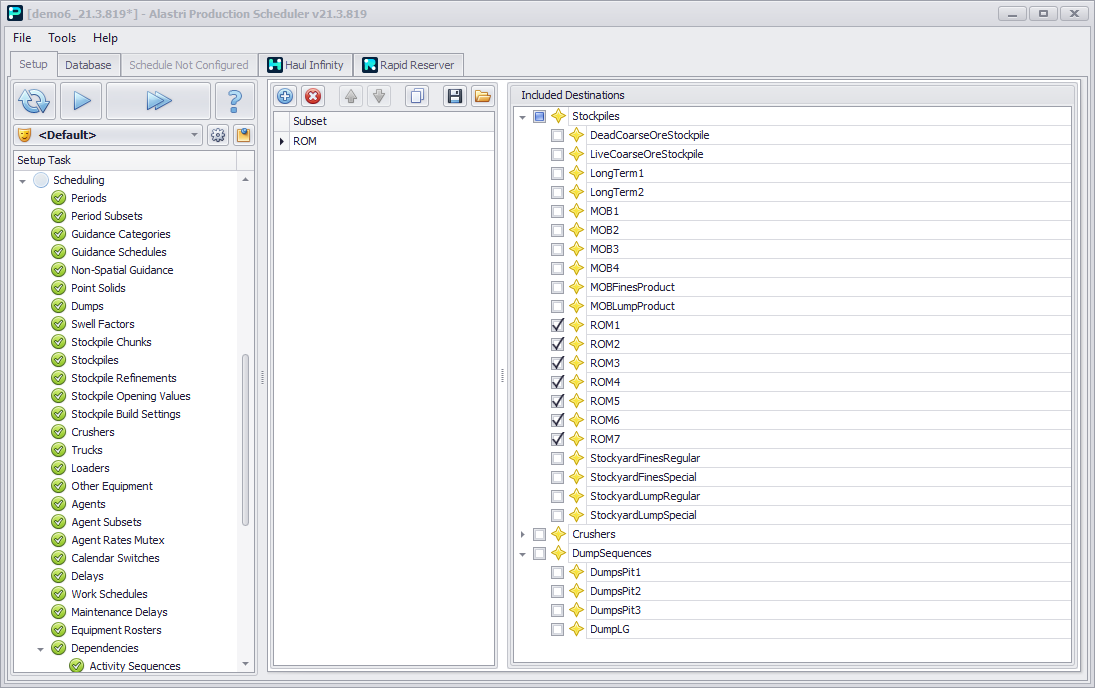 Destination Subsets can be imported and exported from projects using the floppy disk and folder buttons located in the toolbar.