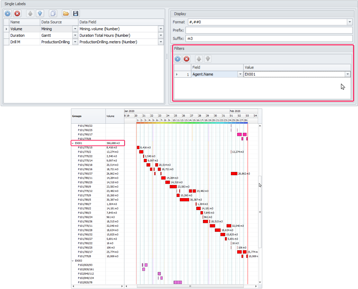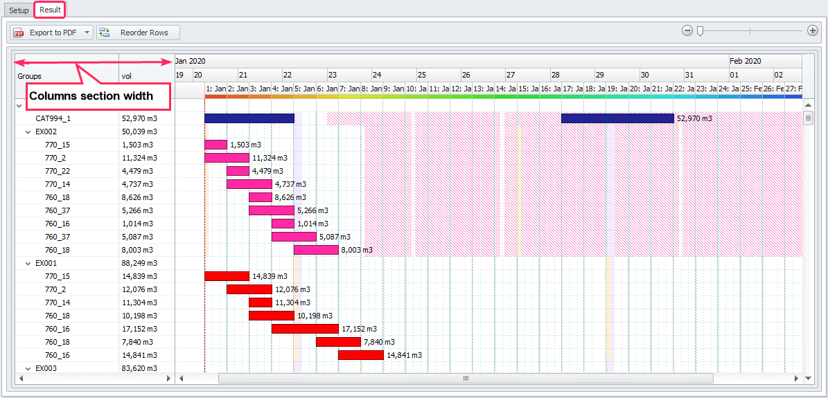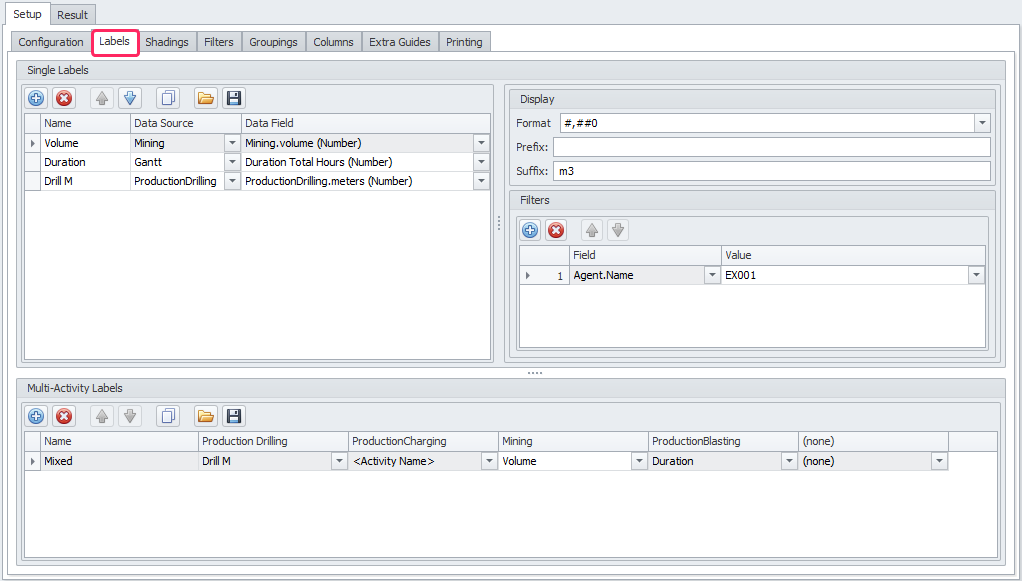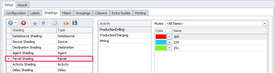 Shadings and Labels settings for Gantt bars in the Result tab. |