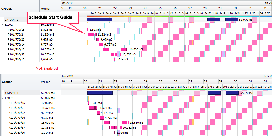 Leave flagged (default), if you want the red dashed line to be shown at the start of the schedule, otherwise unflag this option.