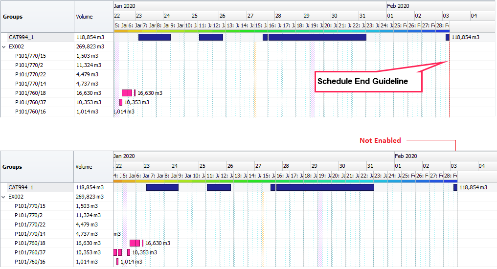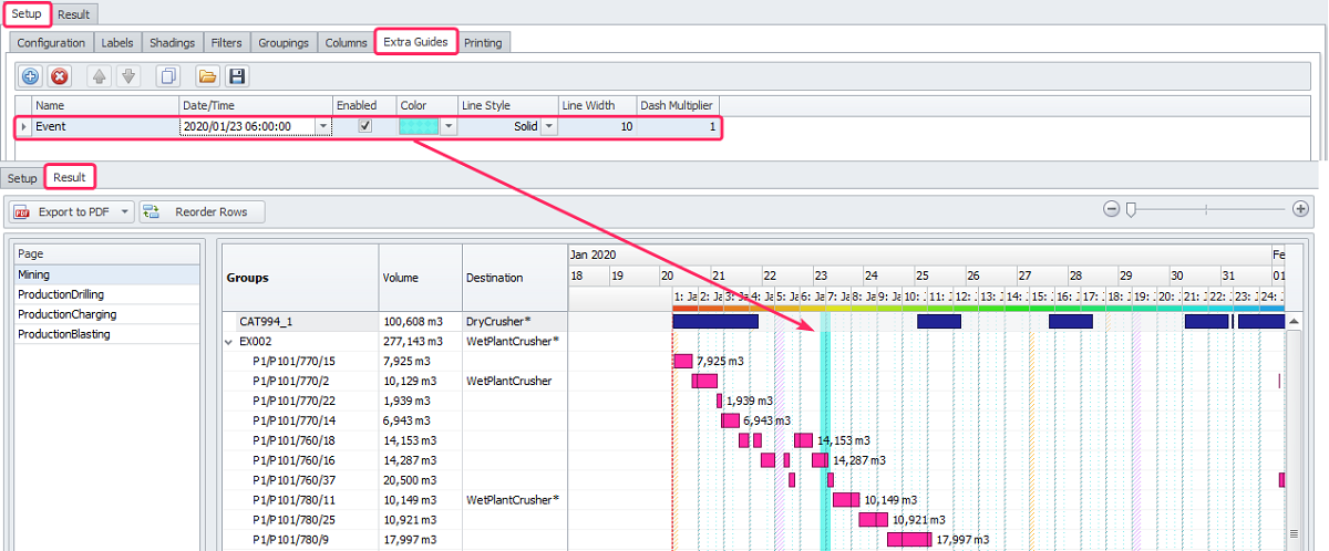 In the Extra Guides tab, you can create extra guides (vertical lines on the Gantt at a specified date) to indicate certain important events.