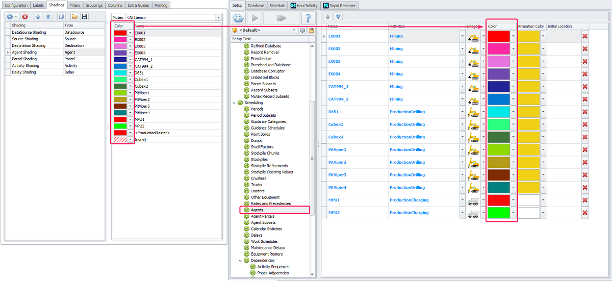 The color for the Agents shading is set to the color in the Setup > Agents, but you can change it, if required.