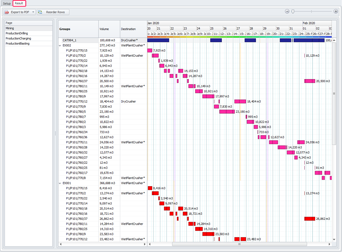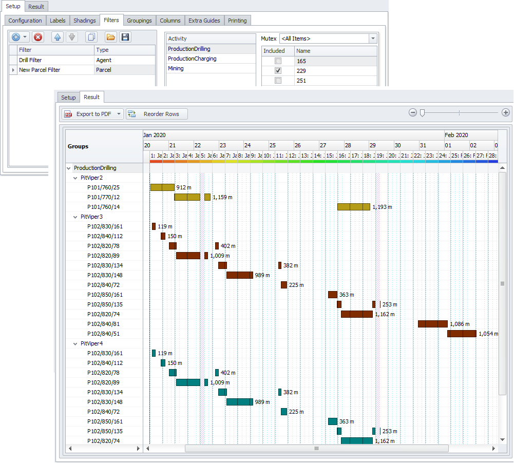 The Gantt report with your custom configuration is displayed in the Result tab.