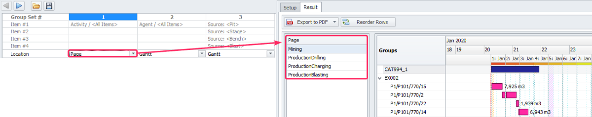 In the bottom part of the Groupings tab, configure how Group sets will appear in the resulting Gantt report.