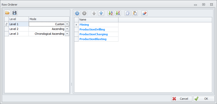 In the Row Orderer dialog you can change the order that items are sorted in the Gantt.