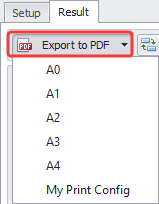 In the Result tab, press Export to PDF button and select one of the printing configurations.
