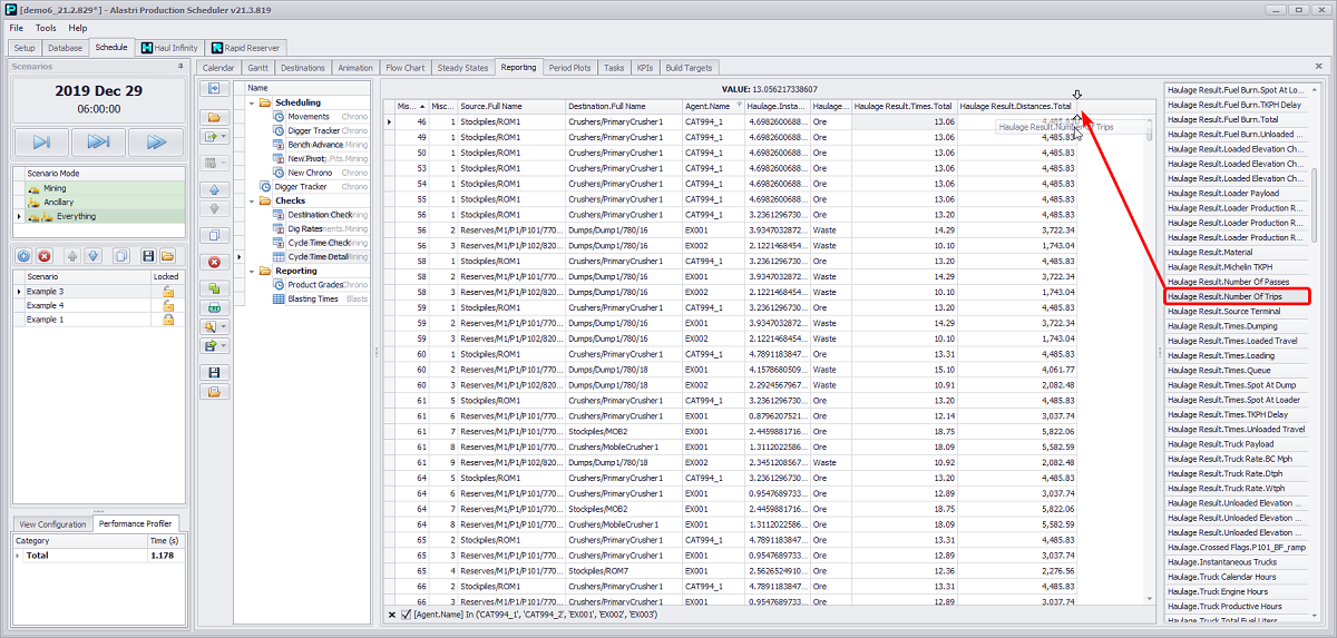 Drag and drop “Haulage.Result.Number Of Trips” field to the location in the grid table required
