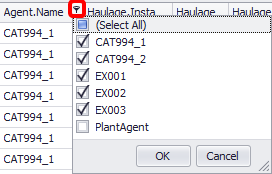 For any columns the filter icon is available, allowing you to filter the fields displayed by the required parameters.