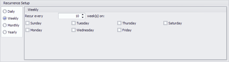 If the Recurring Delay check box is ticked, specify the granularity of the delay recurrence: