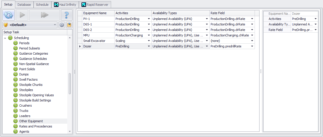 Select the applicable Activity and Availability Type for the piece of equipment.