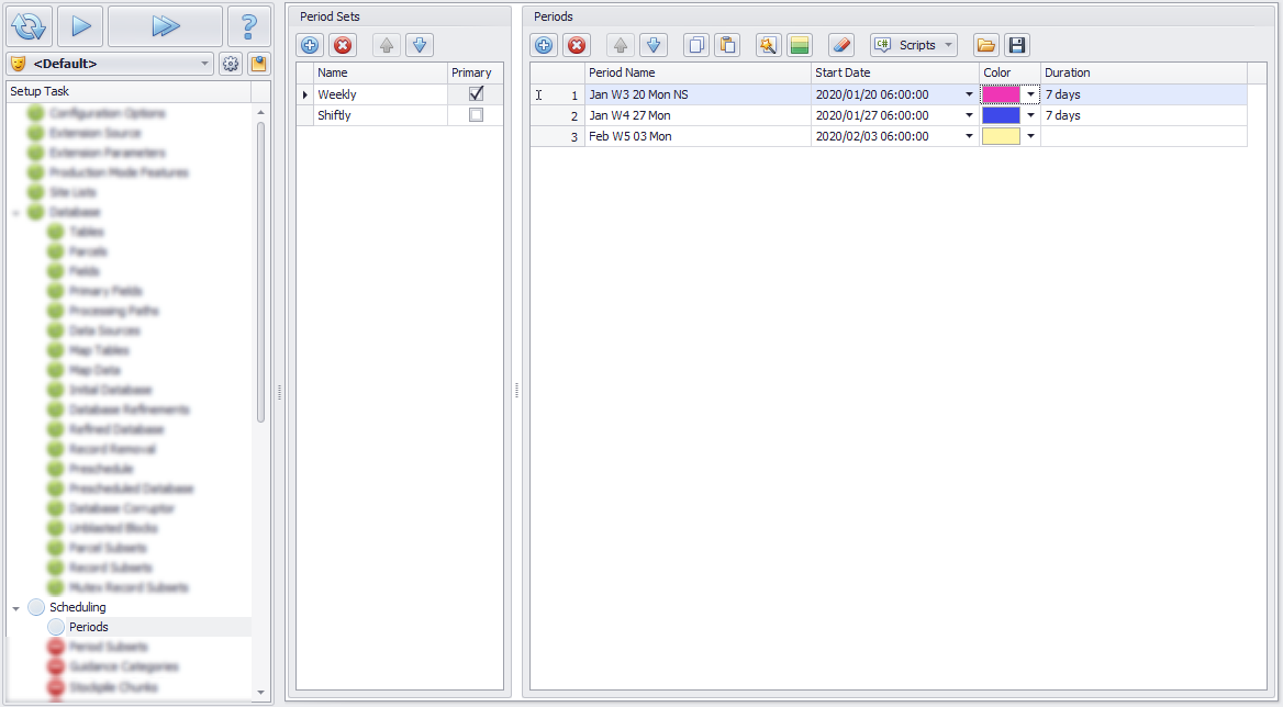 Weekly Scheduling Periods flagged as the Primary set