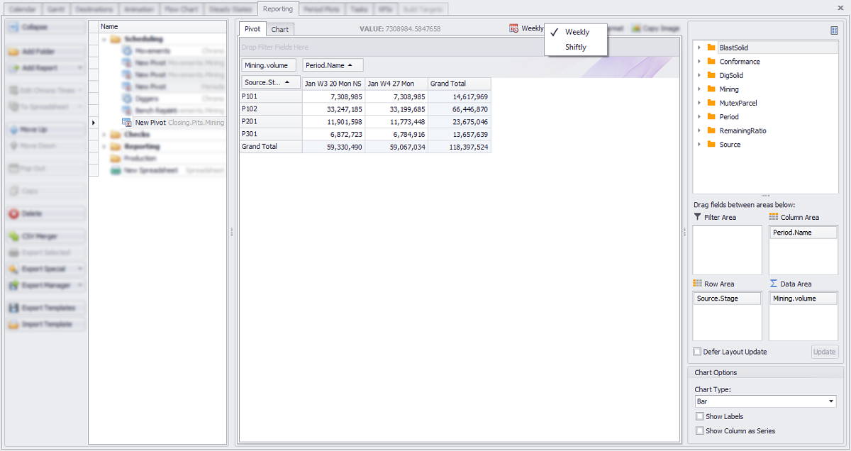 Simple pivot report with the “Weekly” Period Set selected