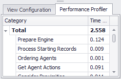 The Performance Profiler tab allows experts to diagnose performance issues in the project. Each line item reports the time taken on that task during the schedule.