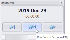 The second play icon, will run the highlighted (current) scenario.