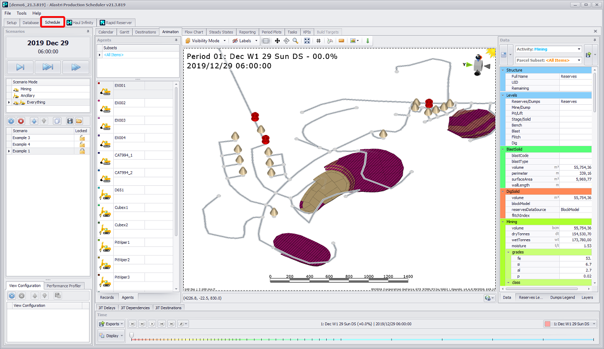 The Schedule tab is the main work area of Alastri Production Scheduler software, representing the unique functionality of scheduling and allowing user working with it.