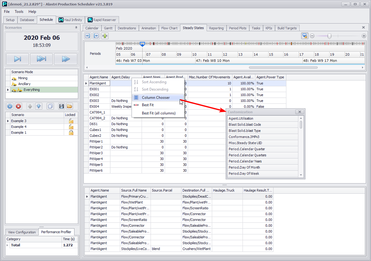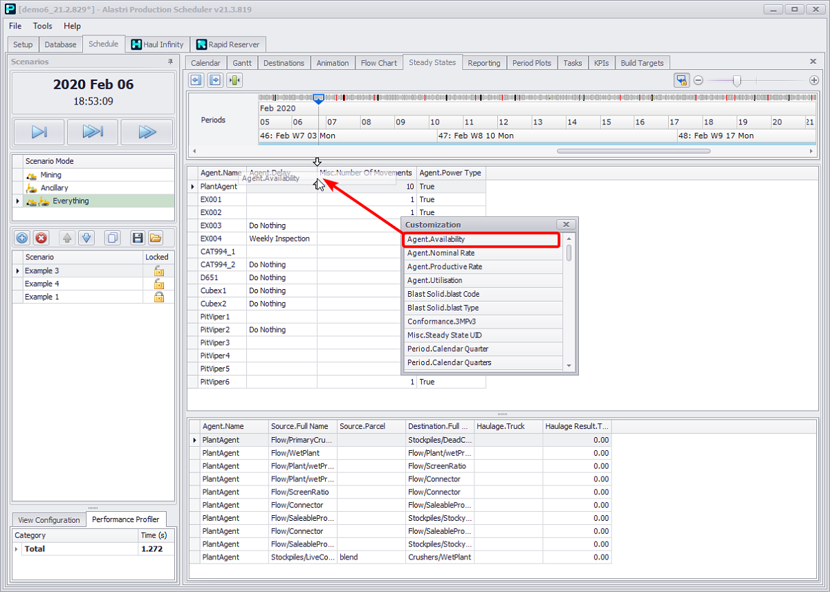 The Steady States tab is used to understand what an agent is doing at a specific point in time.