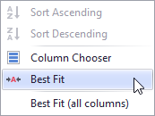 In this tab, you can also automatically adjust the width of the columns display. To do this, right-click on the header and choose "Best Fit" to set the optimal width of the selected column or "Best Fit (All Columns)" to automatically align the width of all columns.