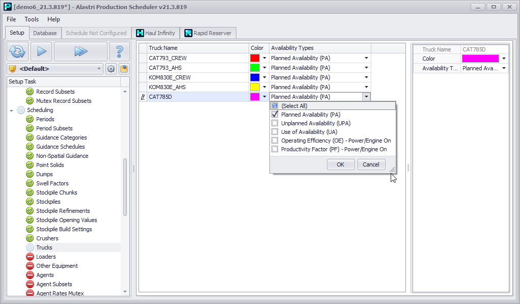 Go back to APS > Setup tab > Site Lists step > Truck Types field: