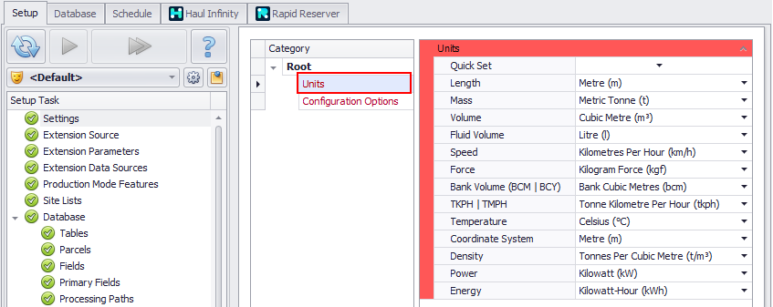 Use the Quick Set drop-down to select Metric or Imperial units of measurement.
