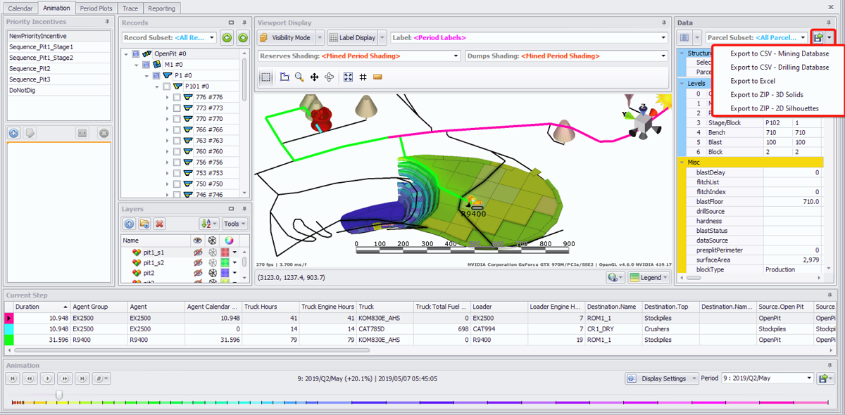 You can also export Reserves and Solids database through the Animation tab, Data panel. More details on each export option see in the Export Reserves & Scheduling Solids section.