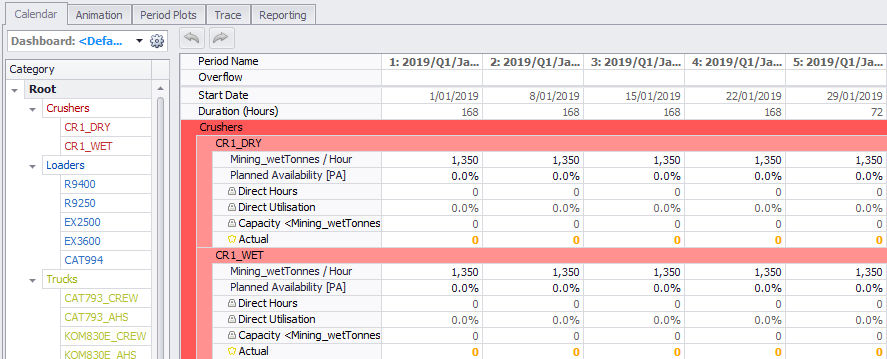 Check 2: Schedule > Calendar > Crushers > Capacity vs. Actual