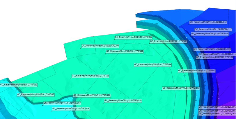 In the Reserves tab in the Viewport Display panel locate Labels field and press its drop-down; there is a preloaded list of automatic labels for the level hierarchy and reserves fields. We can add to this list by configuring custom labels.