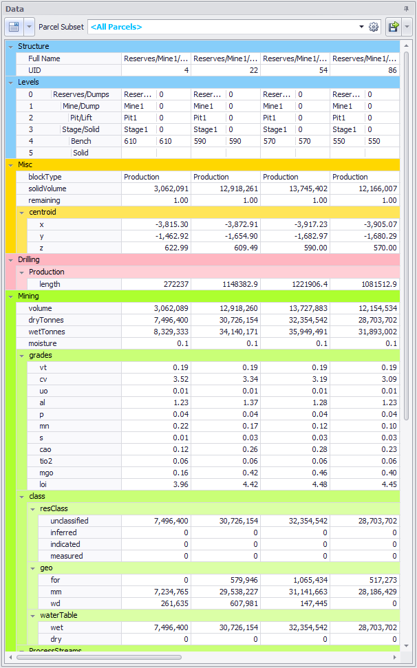 | Known Mining Parcels | Material types which may not be present in the inventory files but must be accounted for in stockpile opening inventories. | |