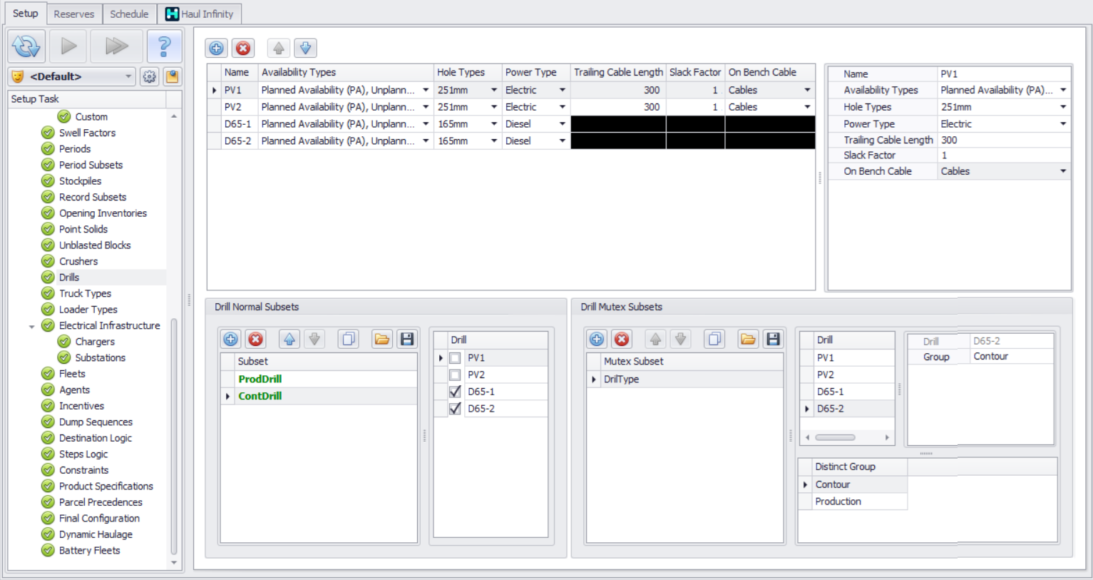In the Setup Task > Scheduling > Drills step, add the drill rig types to be used in scheduling.