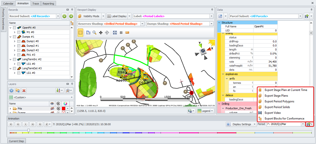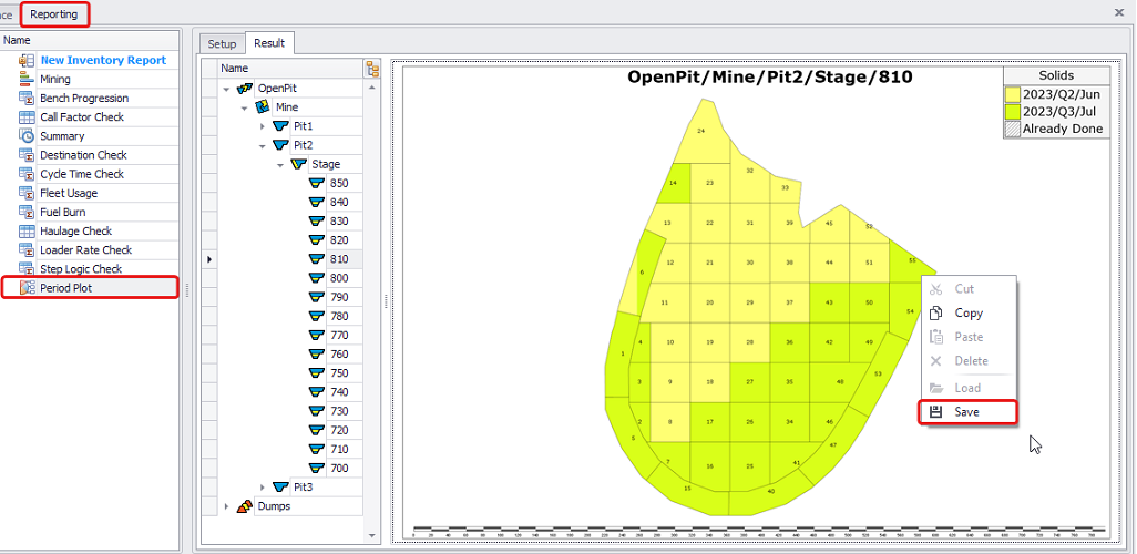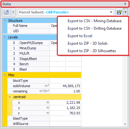Data panel: Export Database and Scheduling Solids and Silhouettes