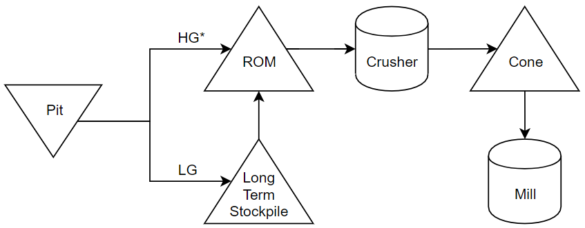 For product-optimised transactions, ATS does not schedule a destination until the end of the period. Once it knows all the ore that has been mined in the period, it decides what to do with it based on the costs and revenues applied to the movement and processing of the material.