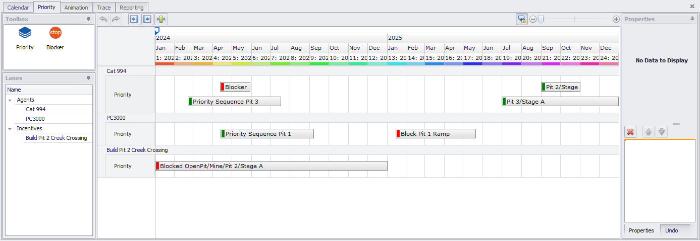 Priority incentives are configured under Schedule > Animation > Priority Incentives. They can be used to directly define a preferred mining sequence over the available blocks.