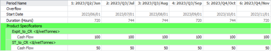 Press Add Product Specification button and from its drop-down select "Stockpile Cash Flow".