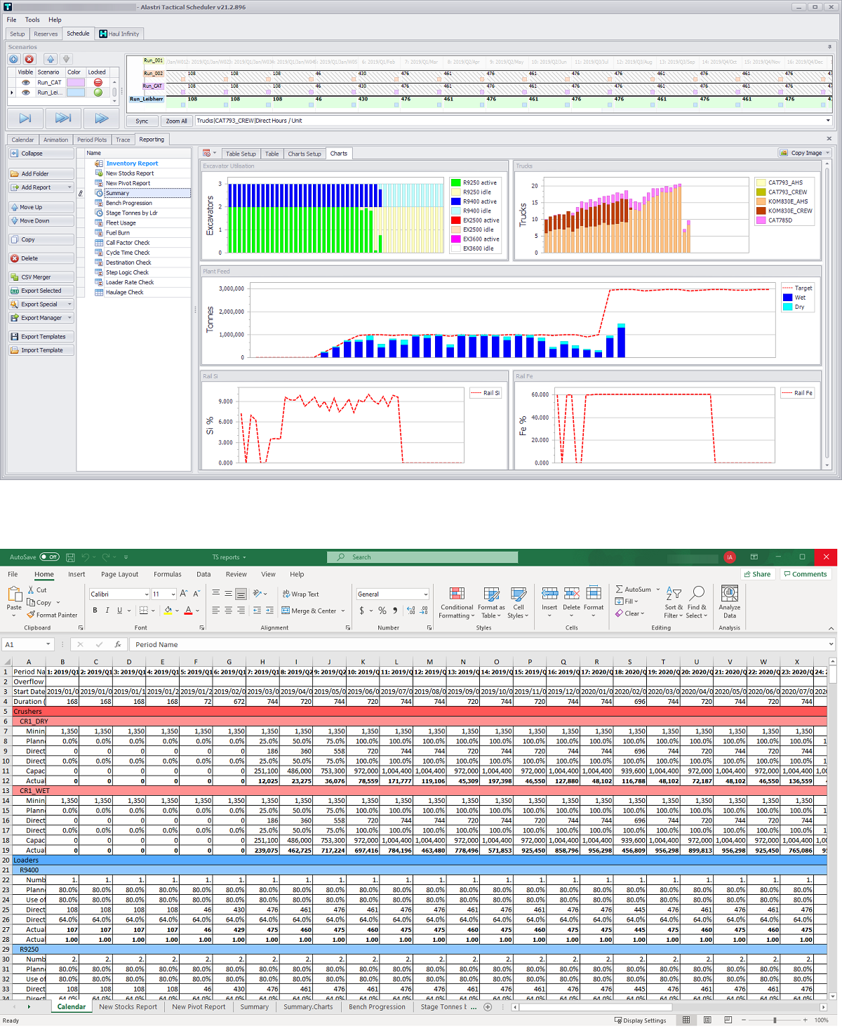 Result of exporting Tactical Scheduler reports to Microsoft Excel